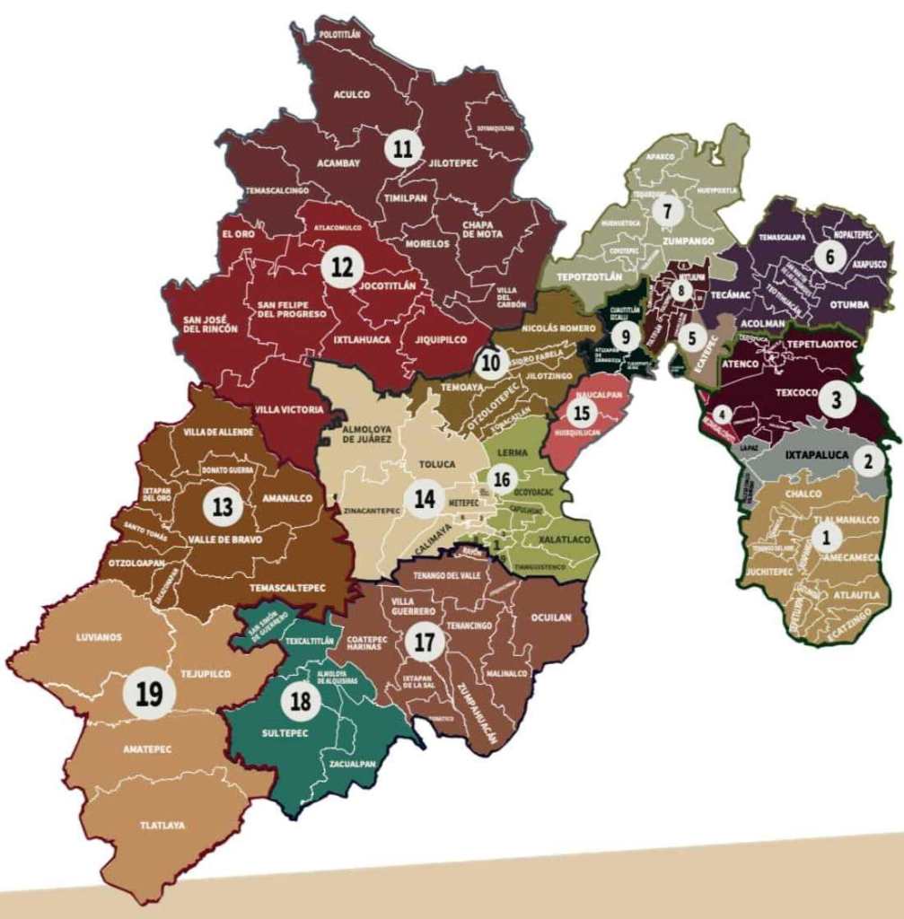 Esta nueva división territorial será usada en todas las Secretarías y organismos que conforman el Gobierno del Estado de México con el objetivo de fortalecer El Poder de Servir en cada comunidad mexiquense, facilitar la ejecución de programas y adaptar las políticas públicas a las necesidades particulares de cada región.