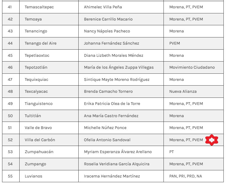 * El resultado electoral en estos municipios se encuentra impugnado, será el TEEM quien resuelva a más tardar el próximo 15 de noviembre.