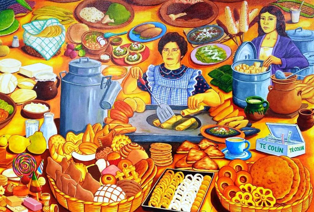 Otro elemento que contempla el mural son las Nieves “Medrano”, los dulces de leche de El Calvario, los ates de membrillo de doña Mary Guadarrama, así como el pan de Chabelita, los licores y cremas artesanales “La Misión de El Huerto” y las gorditas de nata.