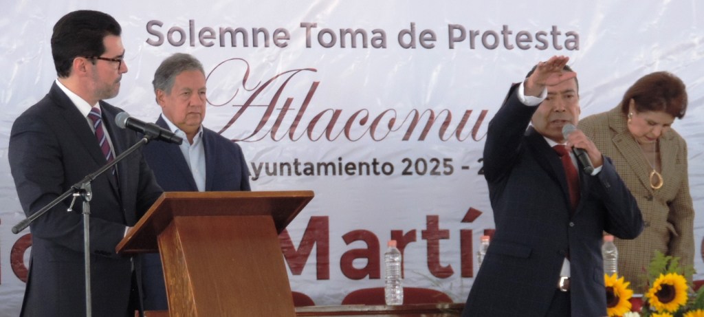 Atlacomulco, Méx., 17 de diciembre de 2024.- En un acto significativo para el municipio de Atlacomulco, Nicolás Martínez Romero rindió protesta como Presidente Municipal, con la destacada presencia del Senador Higinio Martínez Romero y Rafael Flores Mendoza, representante personal de la Gobernadora Delfina Gómez Álvarez.