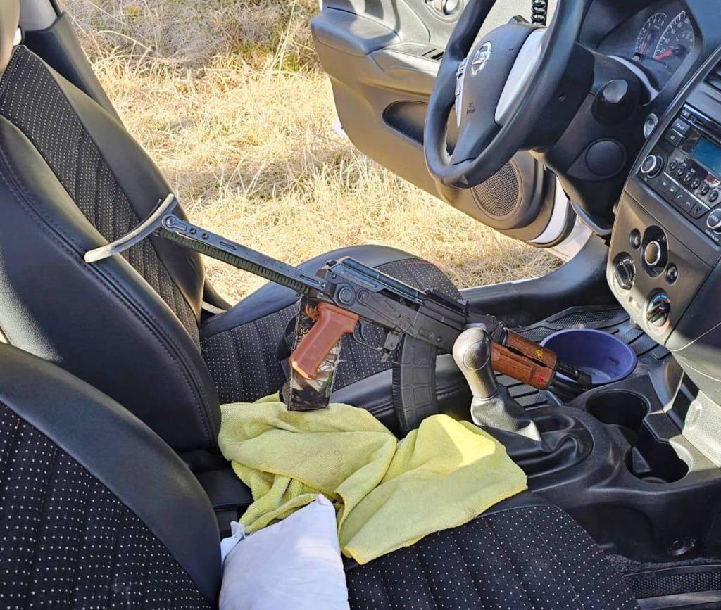 Cabe señalar que en el lugar de los hechos se aseguraron los vehículos en los que se desplazaban, una camioneta marca Jeep Renegade, color blanco, y un automotor de la marca Nissan Versa, con cromática de taxi del municipio de El Oro. También, tres armas de fuego y dos vehículos más en los que se transportaban.