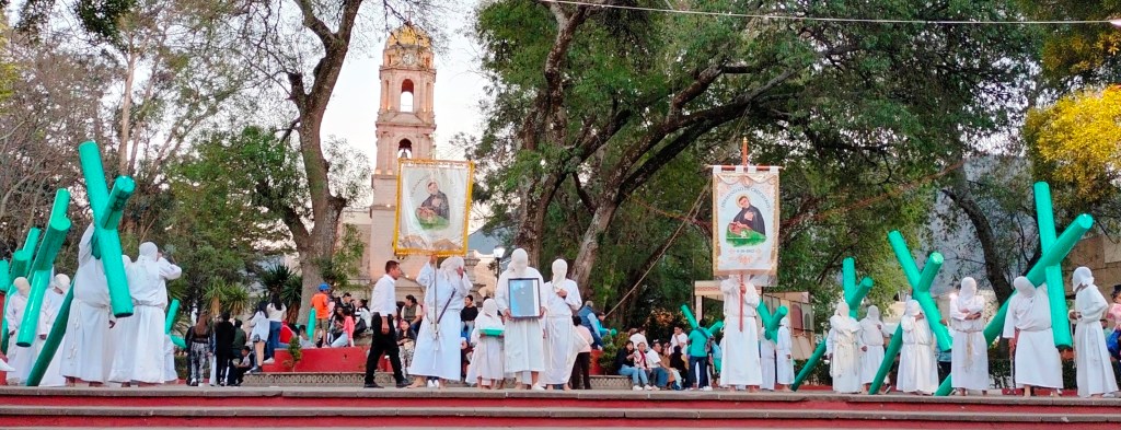 La Hermandad de los Crucíferos o Hermanos Crucíferos, quienes desde muy temprano manifiestan su fe, llevando pesadas cruces de madera sobre uno de sus hombros. Junto a ellos, doce niños engalanados con llamativos vestidos que parecen simbolizar a los apóstoles; además, un tamborcillo y una flauta le dan el toque ceremonioso al acto. Por su parte, los Crucíferos se visten con mantas blancas bendecidas con anterioridad; cubren sus rostros con una manta de cielo blanca, en virtud de que no quieren ser reconocidos mientras cargan sus cruces, algunas de ellas de tres o cuatro metros de largo y con un peso aproximado de 200 kilos.