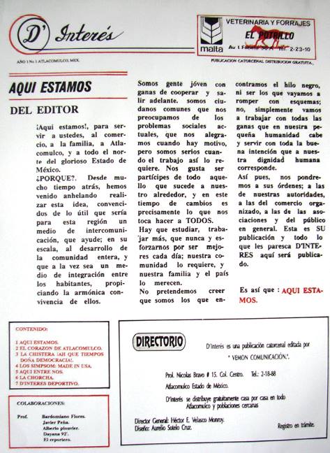 Por supuesto, hubo que cambiar y corregir muchas cosas. Hay que reconocer que el nombre “d´interés” sugiere que al interior de estas páginas deben tocarse temas que llamen la atención de las personas, aunque en el periodo 1992-1994 la mayoría de la información en esta Revista era de carácter oficial. No creemos que eso sea malo –en realidad, cualquier medio de comunicación tiene el derecho de abrir esos espacios-, sin embargo, el momento político que se vivía entonces ocasionaba una enorme molestia entre la gente al leer esa clase de notas.