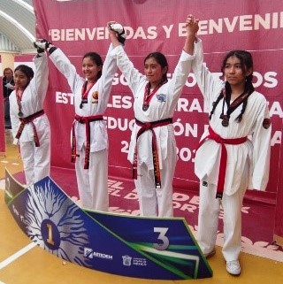 De igual manera, el plantel se honra en compartir que una de nuestras alumnas obtuvo el tercer lugar en la disciplina de taekwondo, a nivel estatal, todo un logro digno de admirarse ya que este deporte es muy complejo.