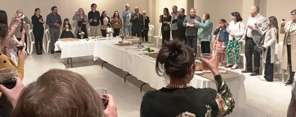 Posteriormente los asistentes al evento fueron invitados a la sala de exposiciones para realizar un brindis en honor a la vida del homenajeado.
