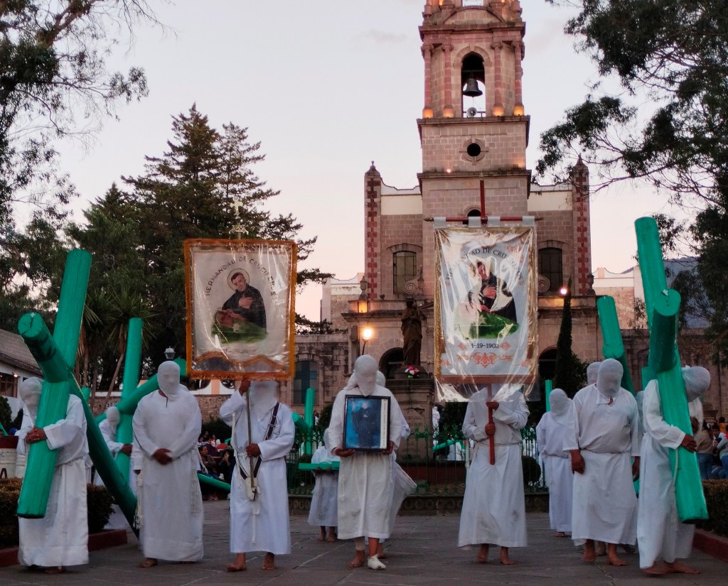 Sí, ellos son la Hermandad de los Crucíferos y, como cada año, van arrastrando sus penas, por allá; por el rumbo del maestro José María Velasco; allá en Temascalcingo.