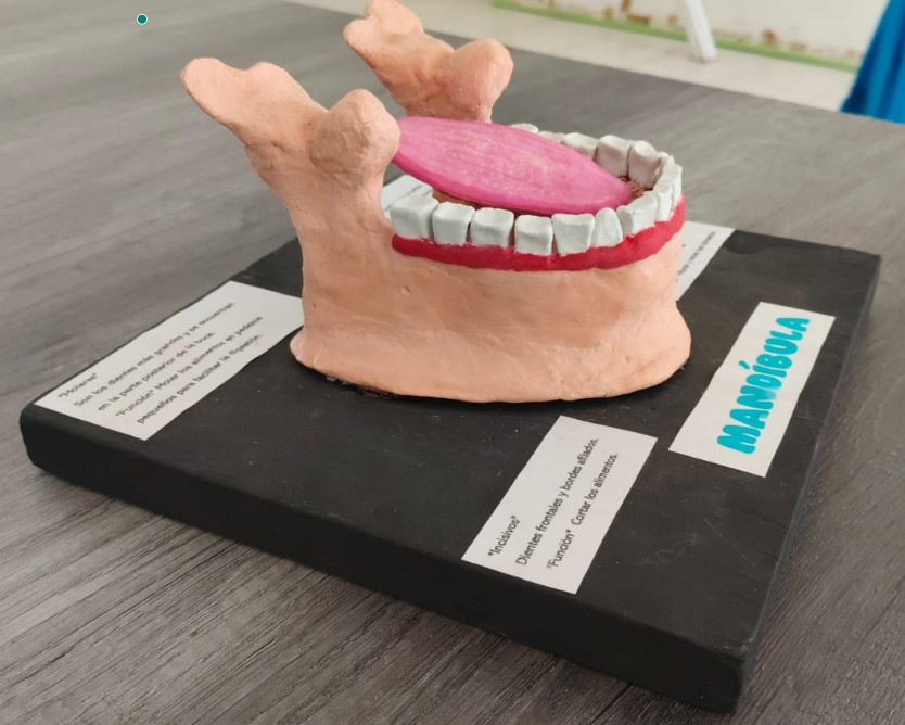 La tercera etapa, consistió en “realizar campañas de salud bucal y proyectarlas con algunas instituciones educativas de la localidad”. Una vez que los estudiantes poseían la información suficiente y habían puesto en práctica los correctos hábitos de higiene bucal, se montó una obra de Teatro Guiñol, se realizó un comic con IA y se diseñaron trípticos y maquetas para exponerlas en un jardín de niños, una primaria y una secundaria, respectivamente.