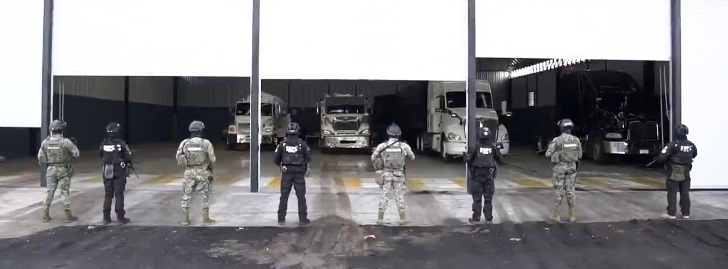 De manera simultánea en el municipio de Polotitlán, Estado de México, se localizó un restaurante que servía de fachada, donde fueron detenidas seis personas y se aseguraron pipas de gas, tractocamiones, contenedores y cajas con medicamento controlado.