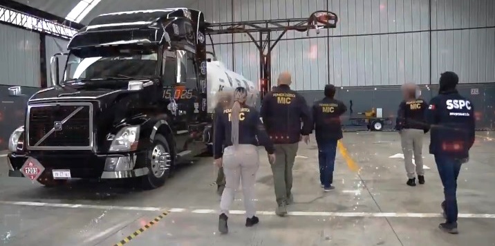 En conferencia de prensa, el secretario de Seguridad y Protección Ciudadana, Omar García Harfuch, destacó los resultados de acciones estratégicas para combatir la extracción ilegal de hidrocarburos, donde elementos de la Secretaría de Seguridad y Protección Ciudadana (SSPC), Secretaría de la Defensa Nacional (Defensa), Secretaría de Marina (Semar), Fiscalía General de la República (FGR) y Guardia Nacional (GN), Pemex y autoridades locales, del Estado de México, tras ejecutar 12 órdenes de cateo, realizaron un decomiso histórico, donde fueron detenidas varias personas, aseguraron armas de fuego, vehículos de alta gama y tractocamiones con semirremolques utilizados para el trasiego de combustibles.