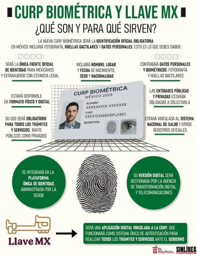 La CURP biométrica sustituirá a la versión anterior del documento y servirá como identificación oficial única para acceder a servicios de salud, educación, seguridad social, programas sociales y trámites migratorios, entre otros. El trámite será gratuito.