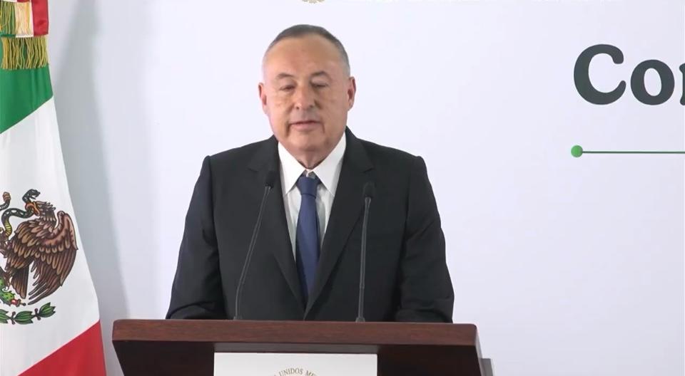 En la conferencia también estuvieron presentes el general Ricardo Trevilla Trejo, secretario de la Defensa Nacional; almirante Raymundo Pedro Morales, secretario de Marina; general Hernán Cortés Hernández, comandante de la Guardia Nacional; Cristóbal Castañeda Camarillo, secretario de Seguridad del Estado de México; y Raciel López Salazar, fiscal general del Estado de Quintana Roo.