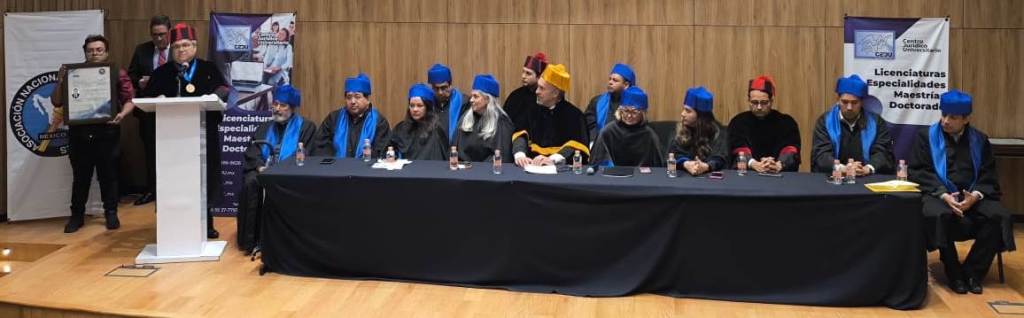 El doctorado se otorgó al maestro Patino Arias y a 14 destacados juristas, comunicadores, académicos y empresarios más, en estricta observancia a lo establecido en el artículo 129 del Reglamento del CEJU, aprobado por la Secretaría de Educación Pública.