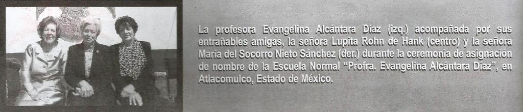 En la misma escuela que ella fundó, hace 47 años, ahora está presente. No importan los obstáculos, ni si se está de acuerdo o no. A partir de ahora la Escuela Normal de Atlacomulco, tiene un nombre asignado: “Profesora Evangelina Alcántara Díaz.”