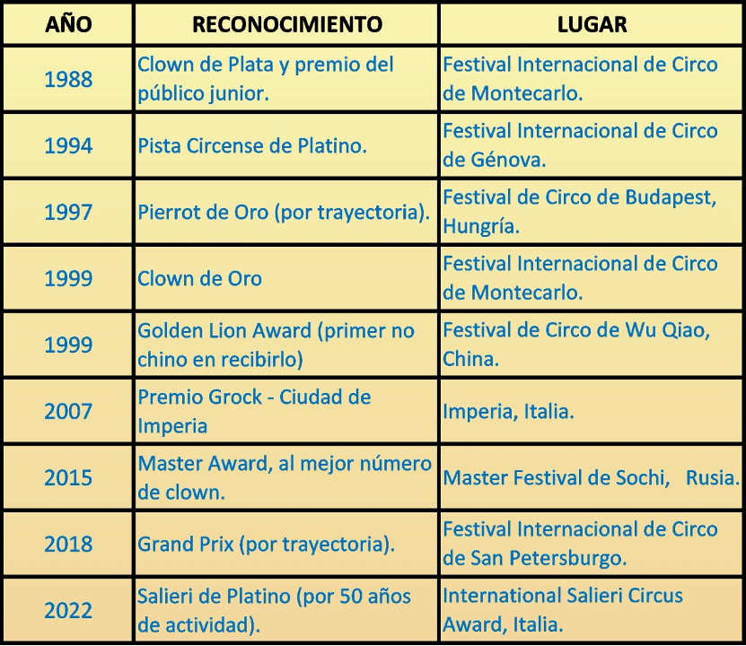 No es casual que David Larible tenga en su haber los más prestigiosos reconocimientos de su especialidad, entre los que destacan: