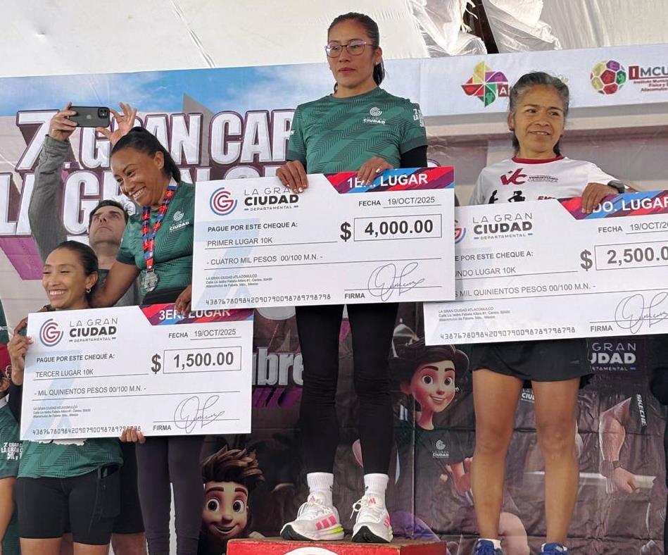 Por su parte, las y los triunfadores en los 5 kilómetros obtuvieron 2 mil 500 pesos en monedero electrónico, canjeable en La Gran Ciudad; misma condición para los segundos y terceros lugares, 2 mil y 1 mil 500 pesos como premio; cabe mencionar que todos los participantes recibieron medalla conmemorativa.