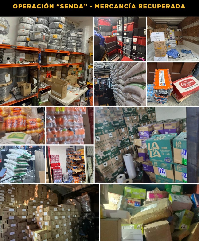 De igual forma fueron intervenidas bodegas y comercios informales en los que se localizaron mercancías diversas como semillas, leche en caja, productos de abarrotes, cubetas con aceite, entre otros productos, de los que no acreditó su procedencia lícita, incluso en uno de los inmuebles fue hallada paquetería de la empresa “Mercado Libre” con reporte de robo.