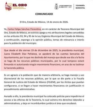*Nota relacionada: https://revistadinteres.com.mx/2026/01/15/crisis-en-el-oro-tesorero-municipal-se-deslinda-y-denuncia-que-alcaldesa-tomo-control-de-cuentas-bancarias-desde-diciembre/