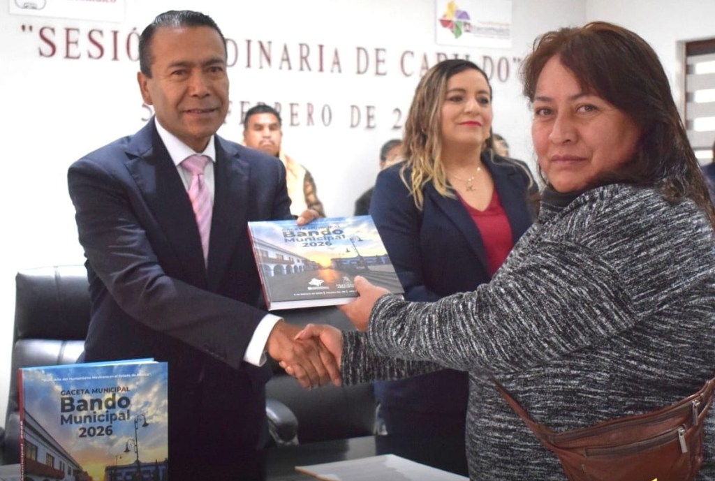 Atlacomulco, Méx., febrero de 2026.- En un acto solemne y en estricto cumplimiento de lo establecido en los artículos 115 fracción II de la Constitución Política de los Estados Unidos Mexicanos, 124 de la Constitución Política del Estado Libre y Soberano de México, así como los artículos 2, 3, 31 fracción I, 48 fracción III, 160, 161, 162, 163, 164 y 165 de la Ley Orgánica Municipal del Estado de México, el Presidente Municipal de Atlacomulco, Lic. Nicolás Martínez Romero, acompañado por el Honorable Cabildo Municipal, promulgó el Bando Municipal del Municipio de Atlacomulco 2026.