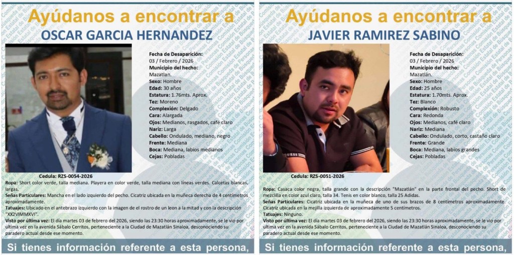 Mientras tanto, los familiares y amigos de Óscar García Hernández (30 años), Omar Alexis Ramírez Sabino (30 años), Javier Ramírez Sabino (25 años) y Gregorio Ramírez Sabino (19 años) continúan organizando la movilización prevista para el próximo 23 de febrero en la Ciudad de México. La marcha, convocada como una protesta nacional, busca visibilizar el caso, reunir a colectivos de búsqueda, organizaciones sociales y ciudadanía en general, y presionar por avances reales en la investigación.