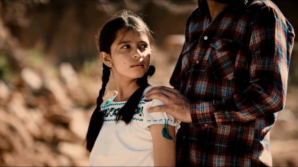 El matriarcado que mueve el eje también es puro Temascalcingo. Aquí las mujeres siempre han sostenido todo: las casas, las tradiciones, la memoria… Los hombres de Sequía prolongan esa misma sequía con revólver y rencor, pero las mujeres cargan el peso invisible, se peinan frente al espejo mientras siguen hablando con los espíritus. Citlali, con su blusa blanca bordada de colores, es la inocencia que el polvo termina tragándose. Esa niña (mi alumna, la pequeña Andrea Lezama) no es aquí actriz cualquiera: es el rostro de nuestras hijas, de nuestras sobrinas, de la generación que todavía juega soñando con el fin de la sequía.