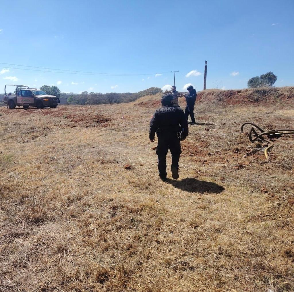 Jilotepec, EdoMéx, 30 de marzo de 2026.- Elementos de la Policía Estatal, Policía Municipal de Jilotepec y personal de Seguridad Física de Pemex localizaron una toma ilegal de hidrocarburo en un campo de cultivo ubicado en la comunidad de San Miguel de la Victoria, de esta demarcación.