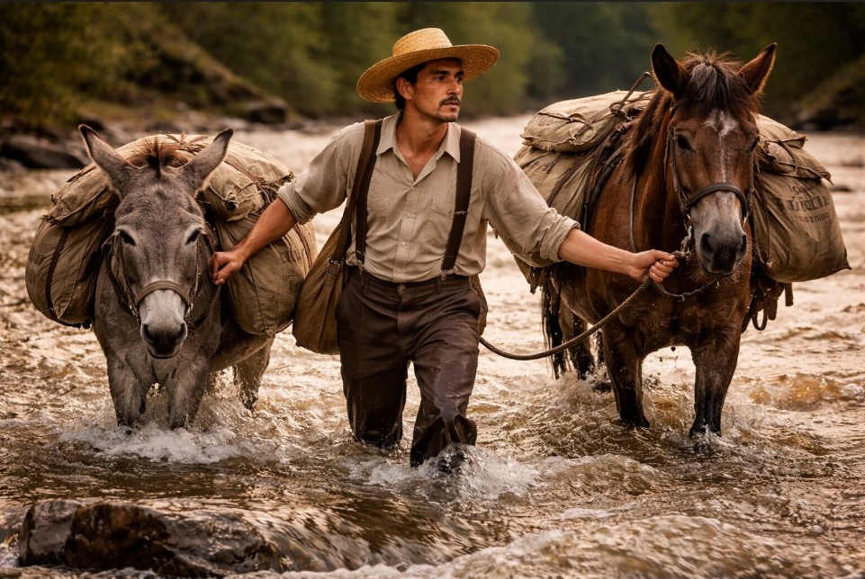 Por suerte, tanto él como los animales pudieron salir casi ilesos de tan lamentable percance, logrando abandonar las turbias aguas del río, pero sin las alforjas. En ese momento la angustia y desesperación hicieron presa de él, pues el simple hecho de que sospecharan de su persona o pusieran en tela de juicio su honorabilidad, lo torturaban por demás. Fue entonces cuando puso de manifiesto su enorme sentido de responsabilidad y dio una lección de cumplimiento de su deber, en virtud de que permaneció ahí día y noche; no quiso separarse ni un instante del lugar, hasta que las aguas bajaran para poder así rescatar las valijas con su invaluable contenido, lo que afortunadamente logró para su tranquilidad y satisfacción del deber cumplido.
